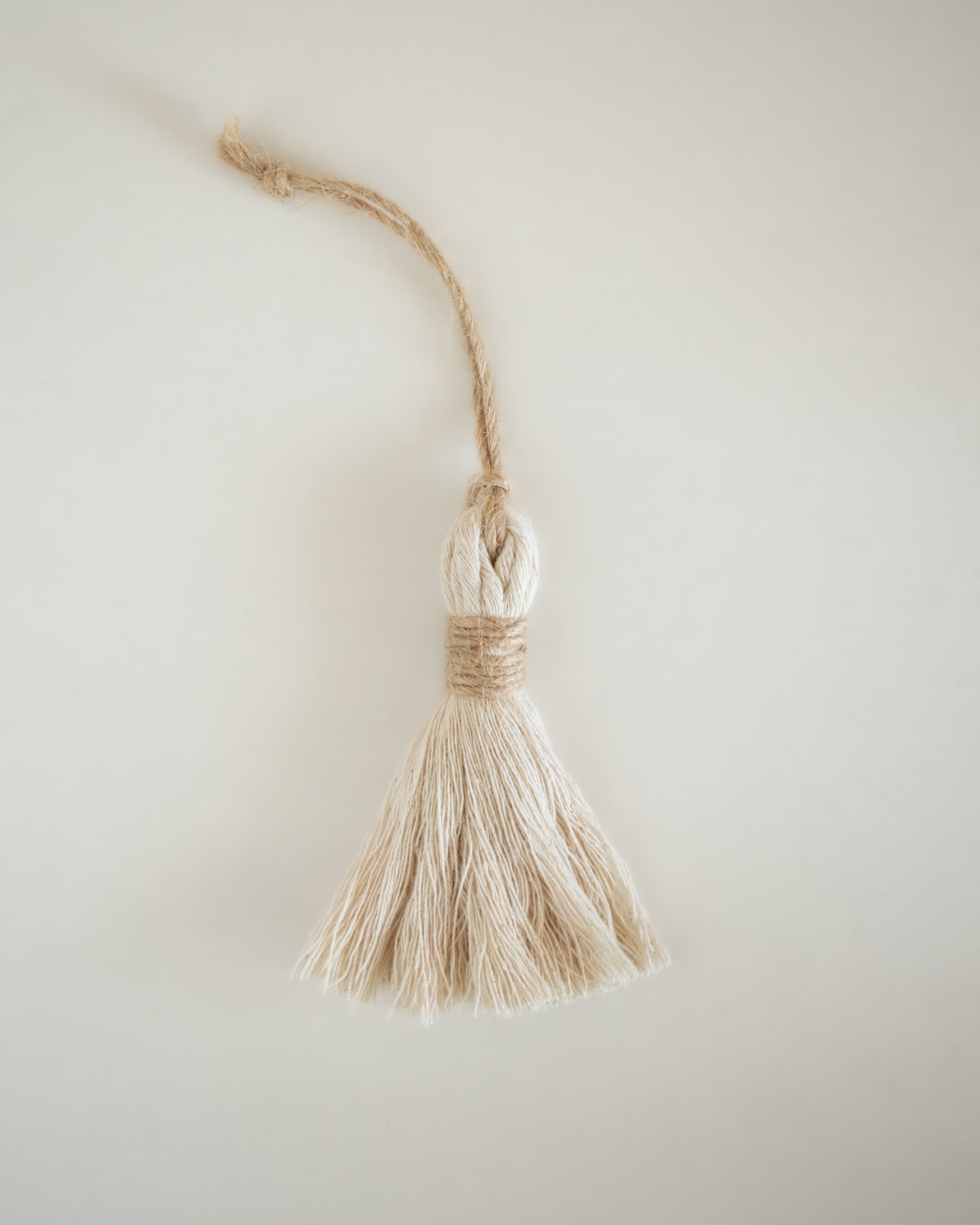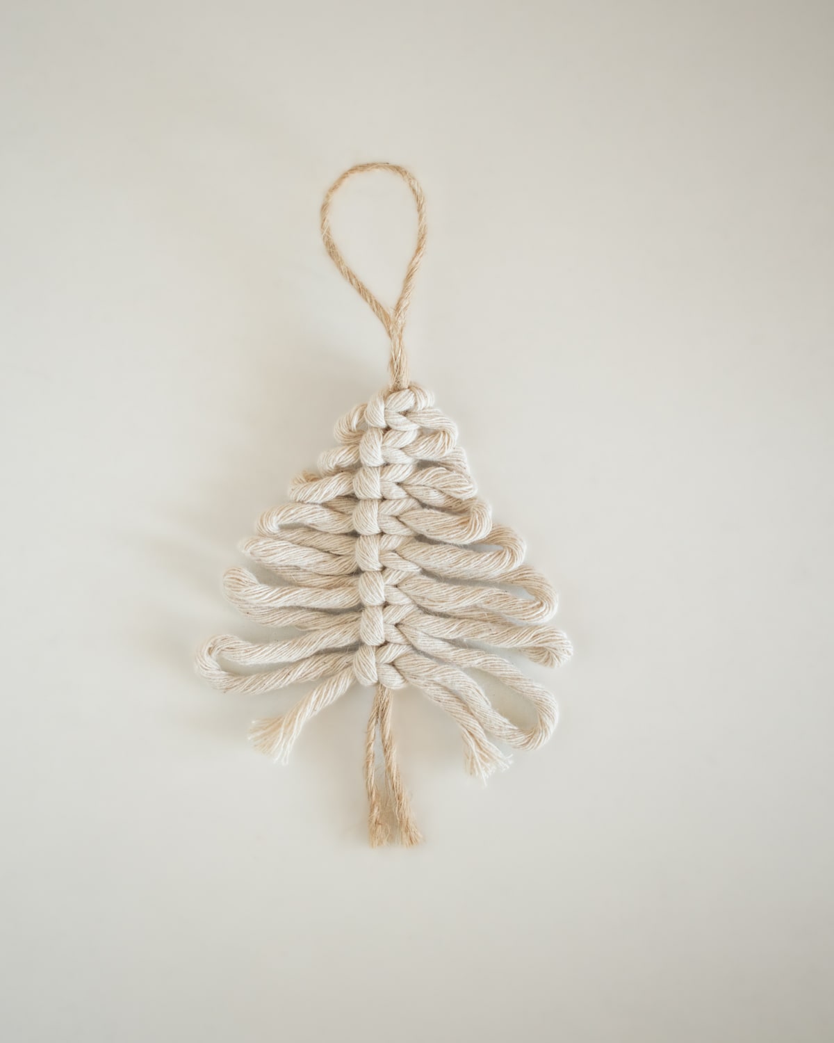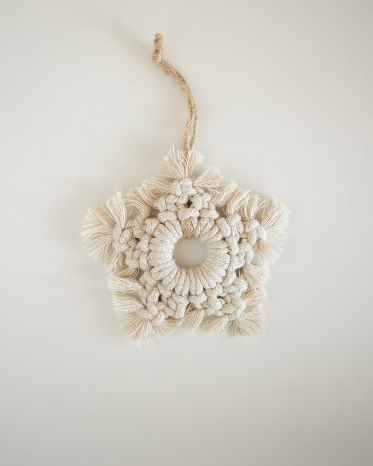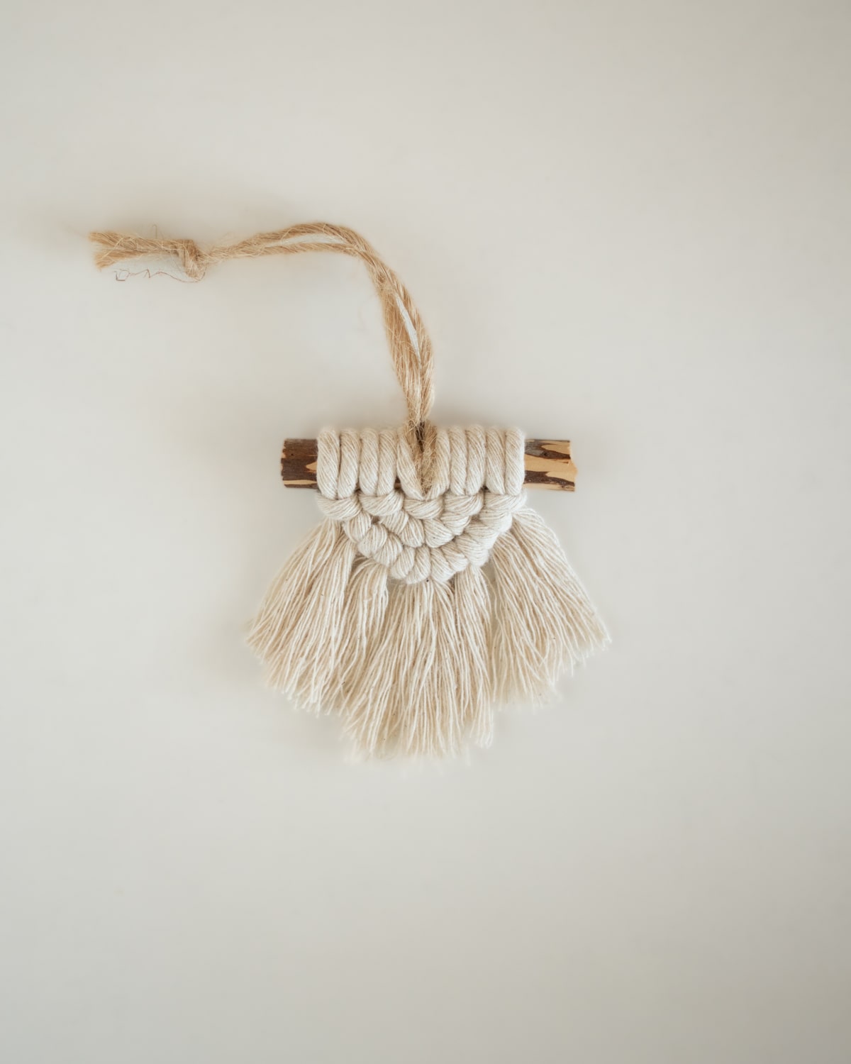 Hechos a mano en Chile con algodón natural, yute y madera, combinan texturas cálidas y colores neutros que aportan un toque acogedor y boho a tu árbol o decoración.