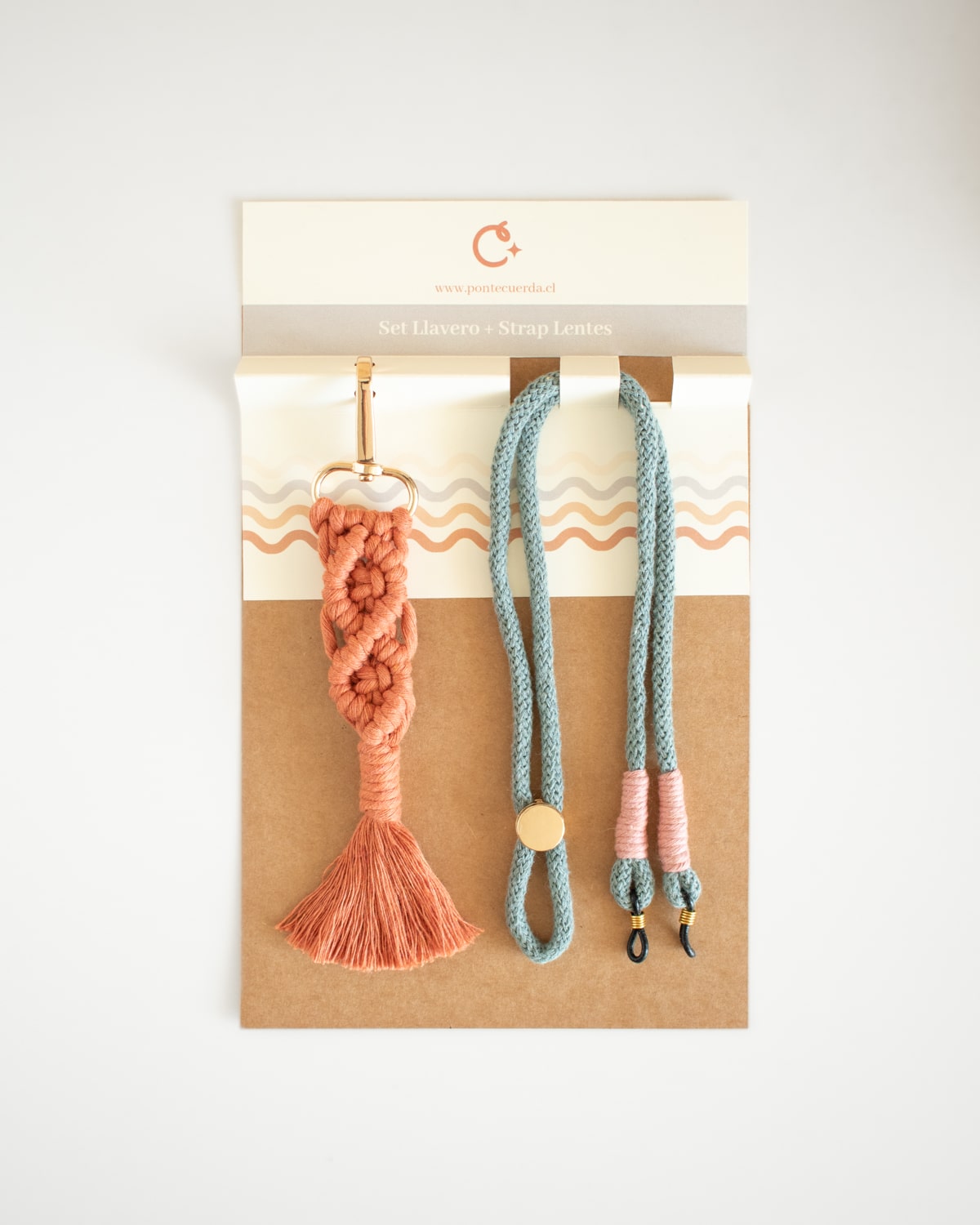 El Set Incluye: 1 Llavero Macramé + 1 Strap Lentes