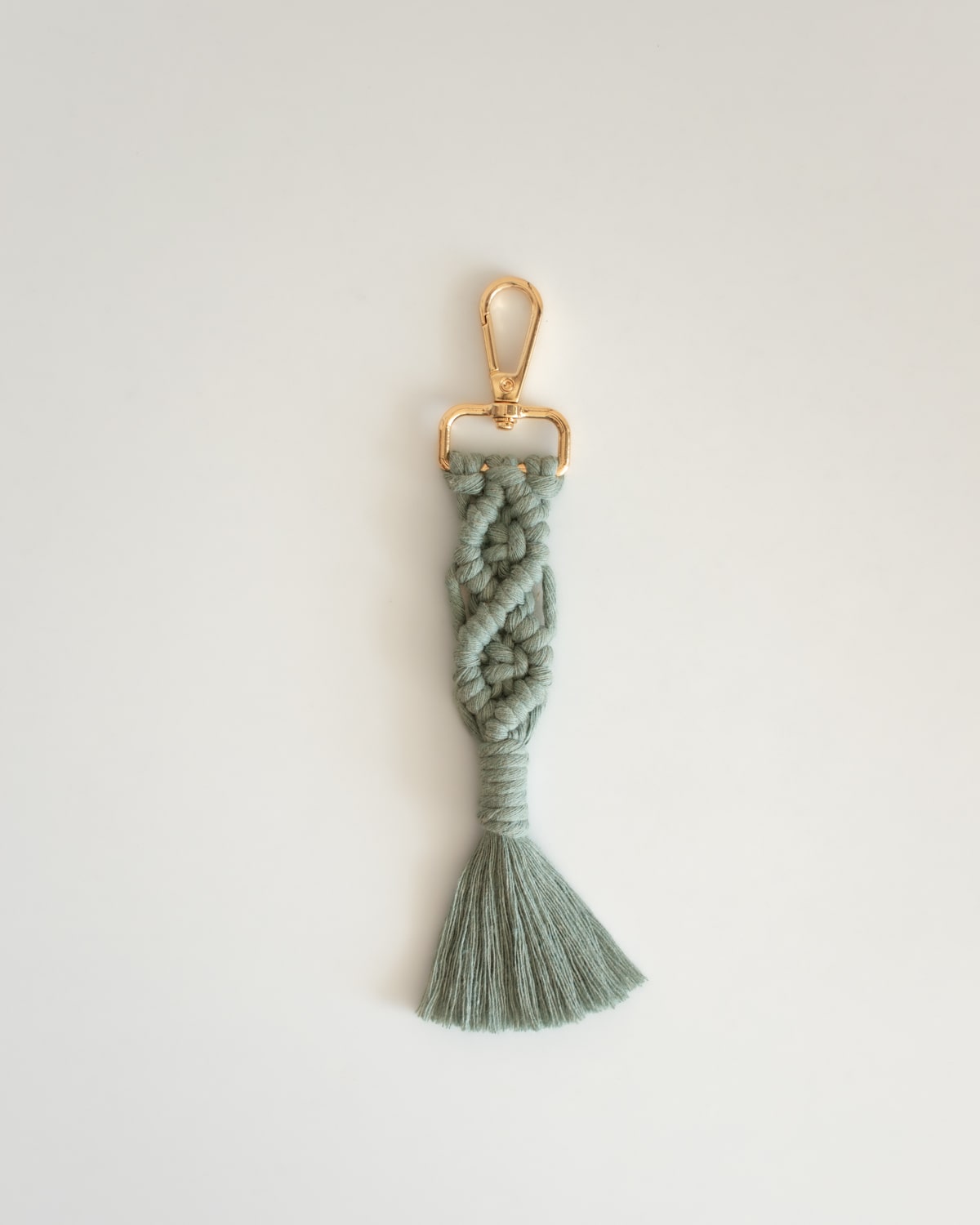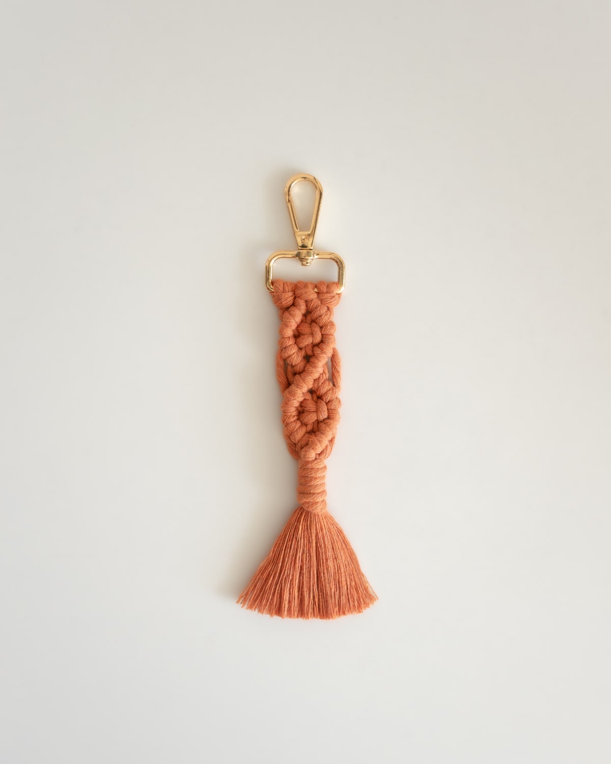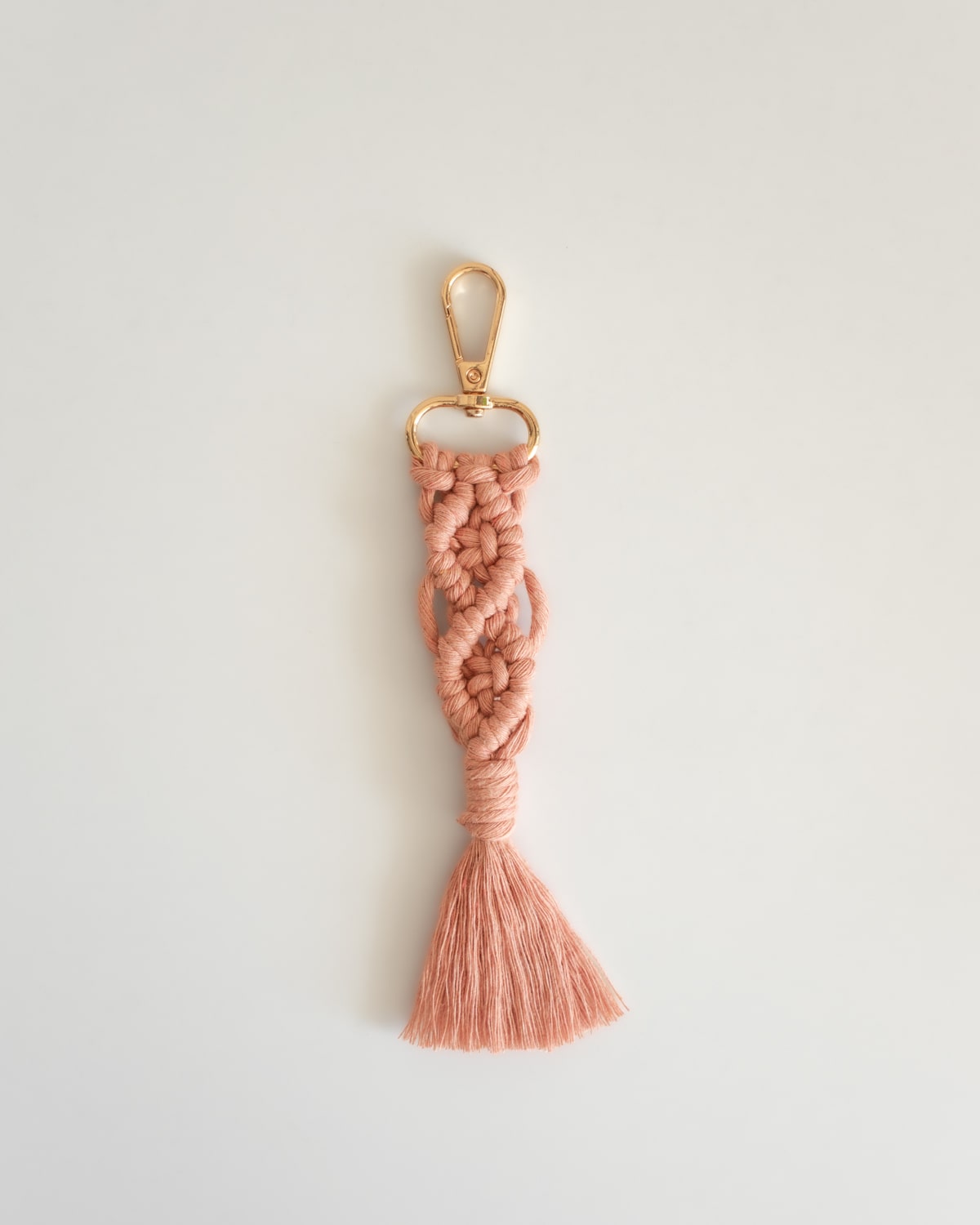 El llavero de macramé tiene un diseño de rombos anudados con un toque boho chic que combina fácil con distintos estilos. El strap de lentes es suave, liviano y ajustable, pensado para tener los lentes siempre a mano y evitar que se caigan al agacharse.