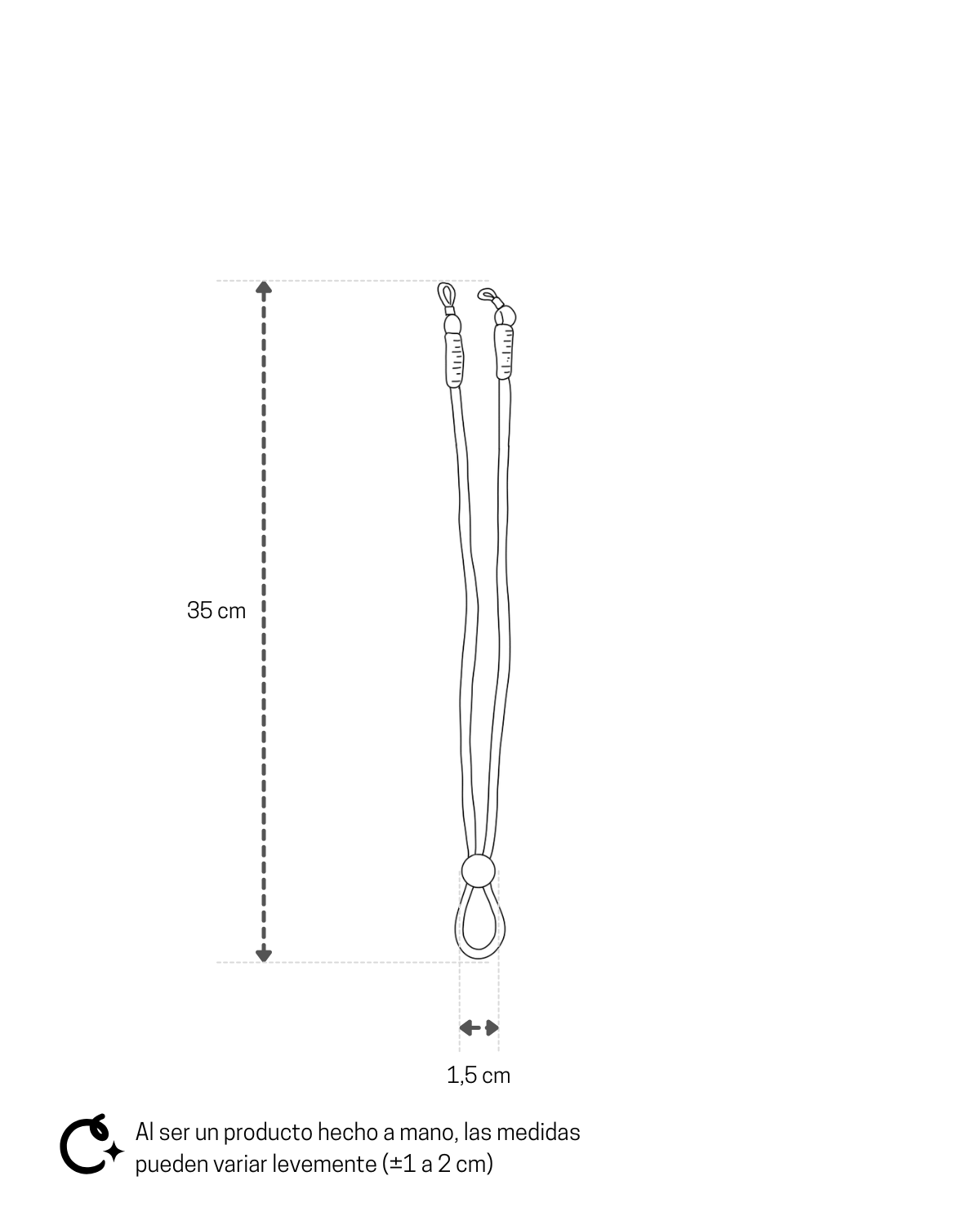 Medidas: Llavero Macramé: Ancho 3cm – Largo 17cm / Strap Lentes: Ancho 1,5cm – Largo 35cm