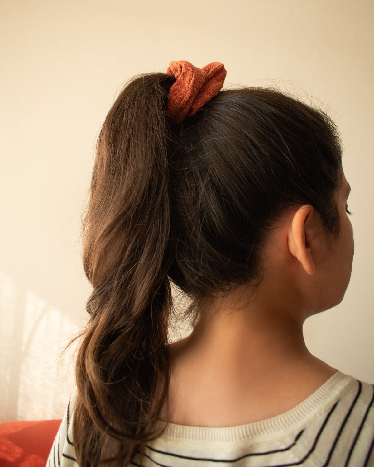 El scrunchie es cómodo y suave para el pelo, y también se puede usar como pulsera — un toque lindo y funcional para acompañarte donde vayas.