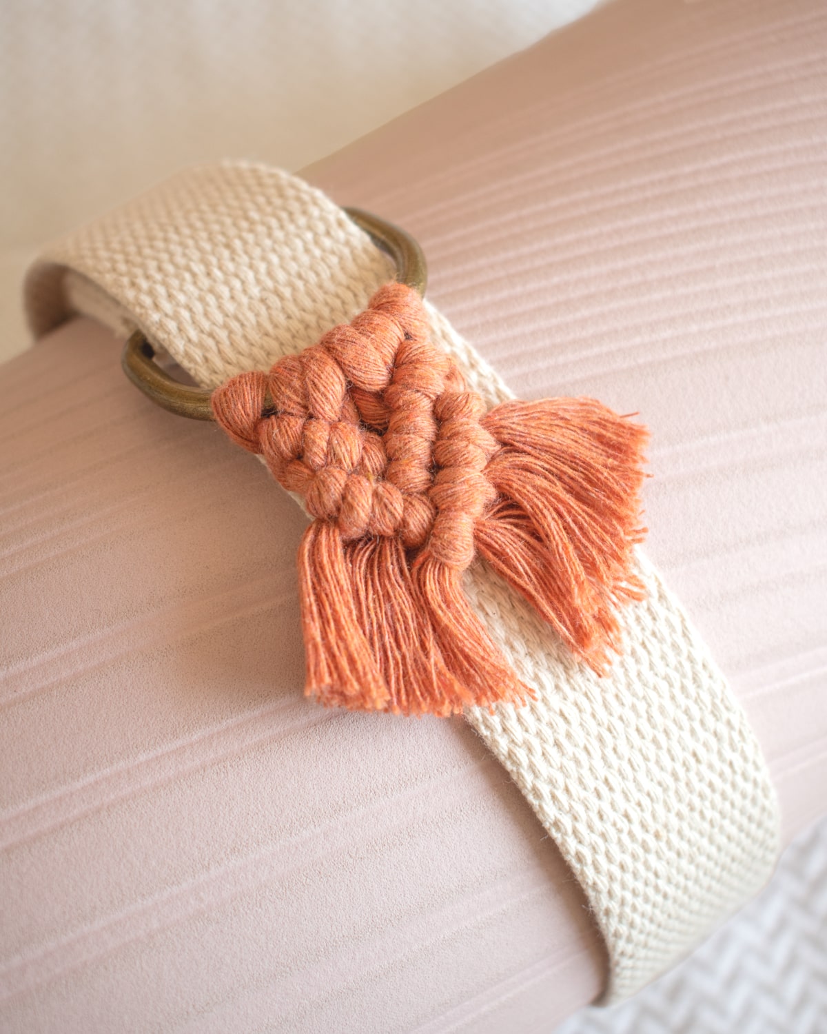 El detalle anudado a mano en forma triangular con flecos lo hace distinto al típico porta mat. Tiene ese aire más natural que va perfecto con tu momento de relajo.