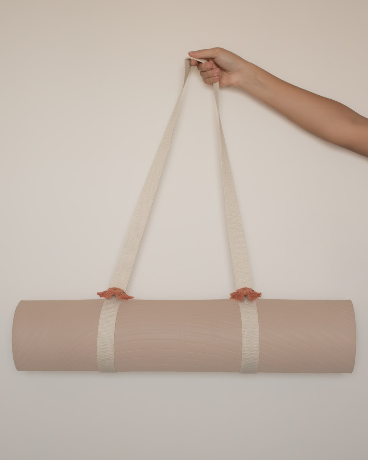 El strap de mat de yoga está confeccionado con cinta de algodón gruesa y resistente, disponible en colores que combinan con todo.